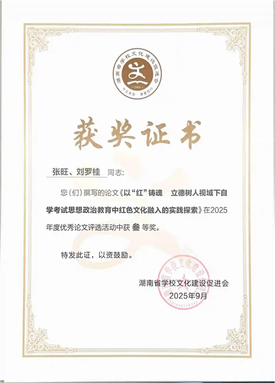 近日,湖南省学校文化建设促进会举办的2025年优秀论文评选活动圆满结束,活动得到全省民办学校的热烈响应,各校纷纷踊跃参与,展示自己的科研论文成果。在众多优秀的申报论文中,经过严格的评审,心敢集团推选科研论文中喜获二等奖一项、三等奖四项,特向获奖老师表示祝贺!